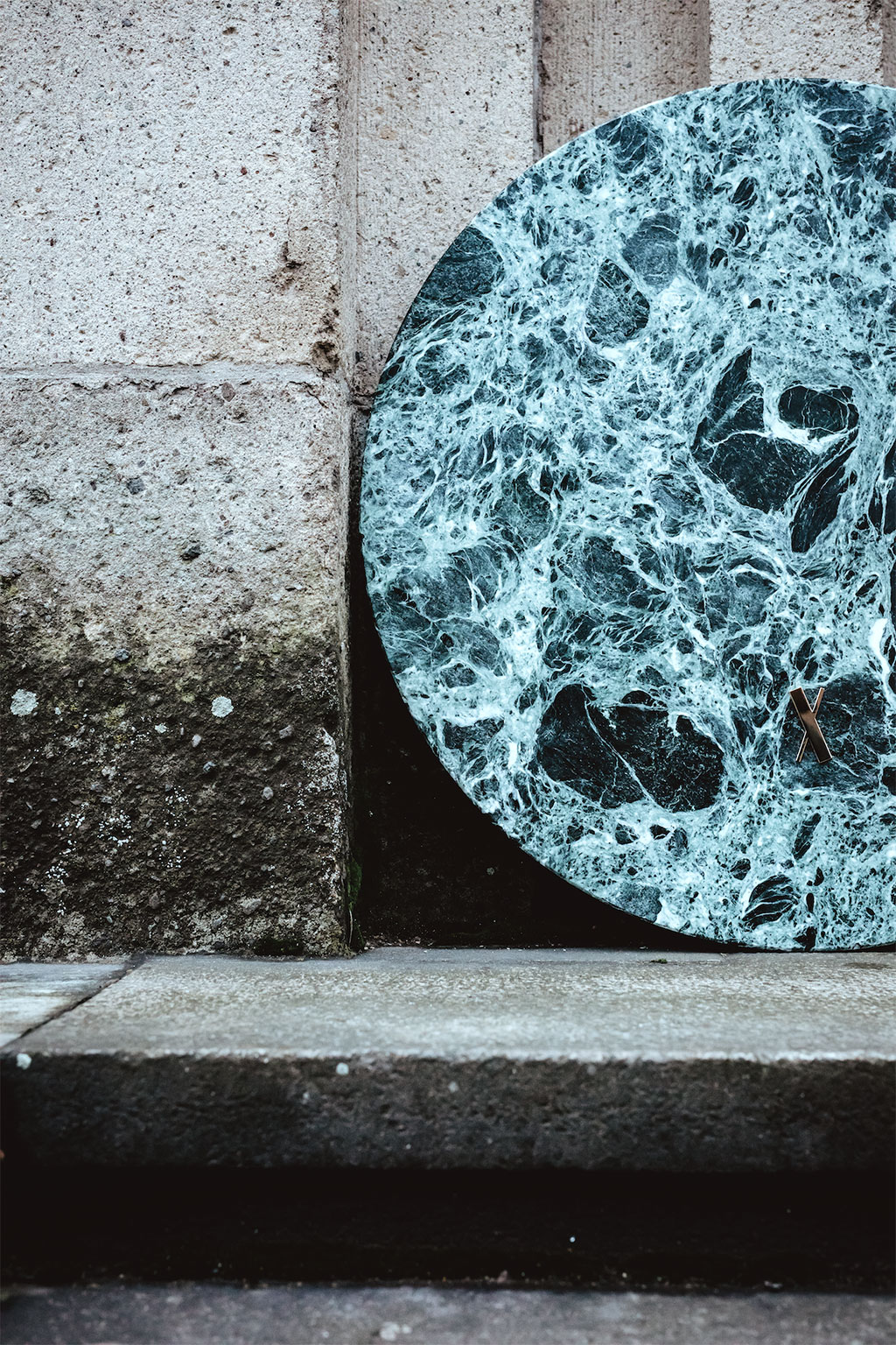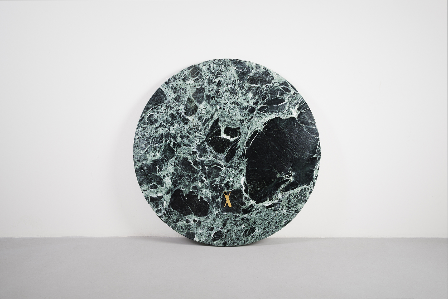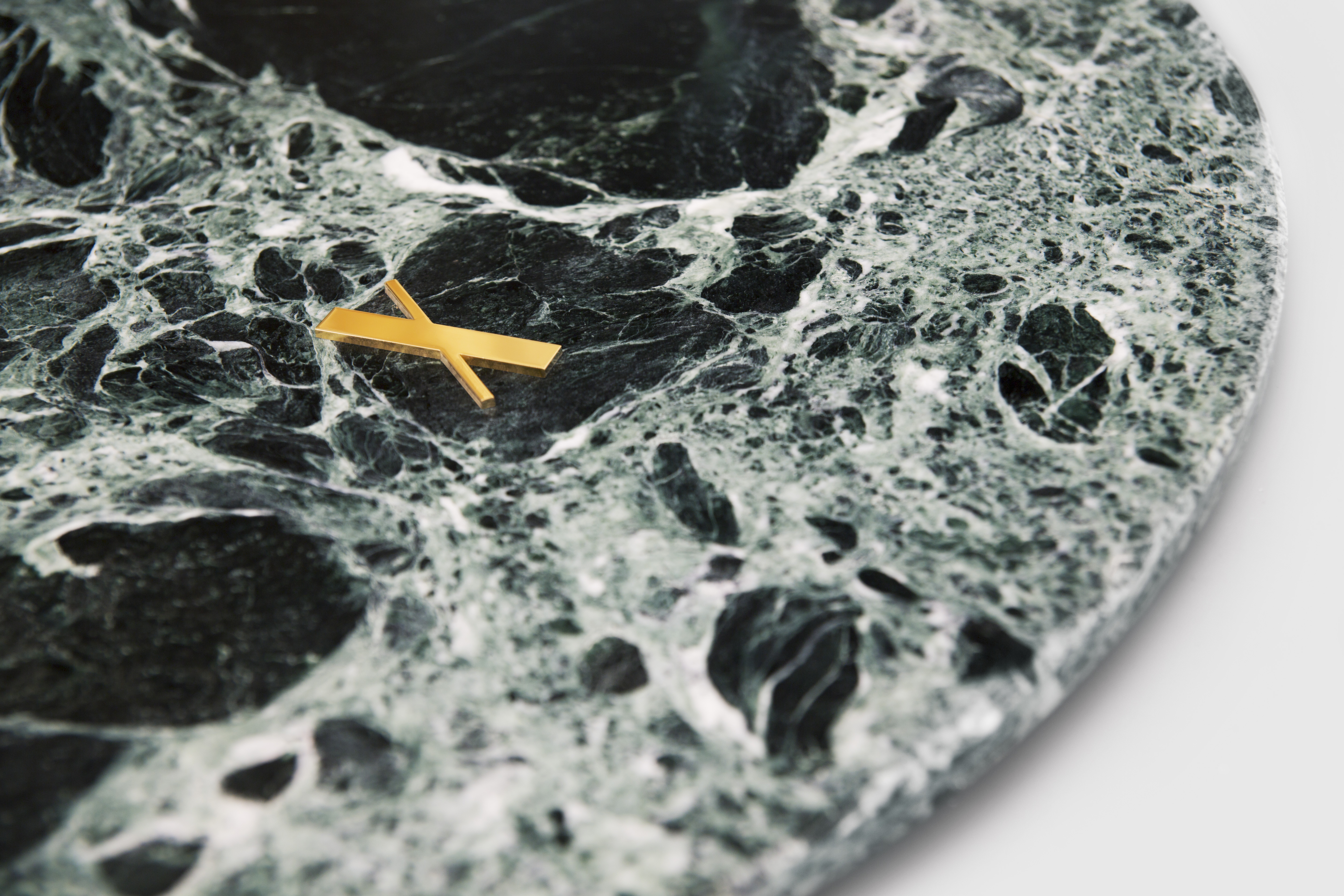 A green marble SLAB with a shading of lighter crystals that reminds of smoke slowly rising. A dominant dark mark enhances the organic impression of this rare piece.