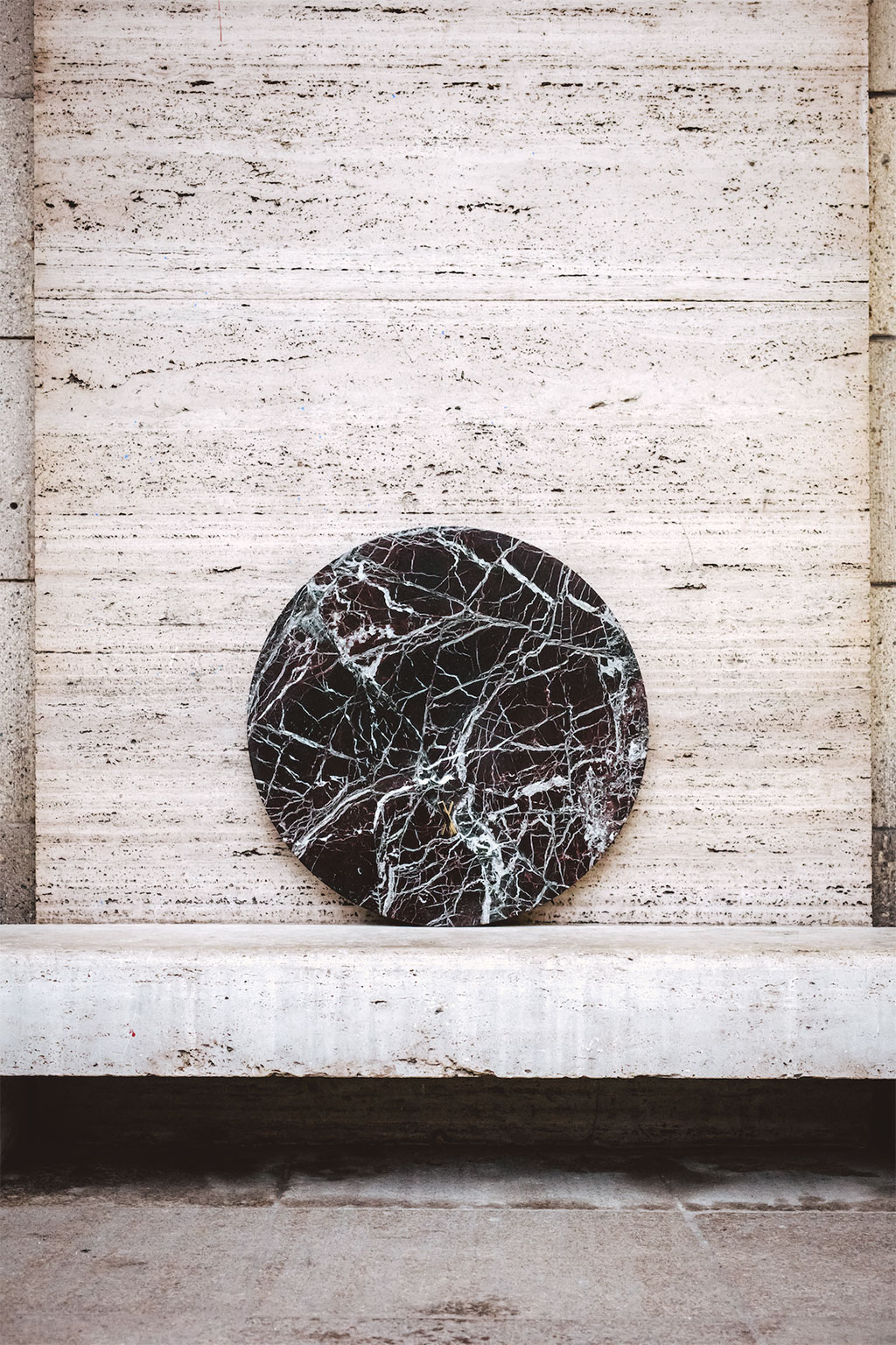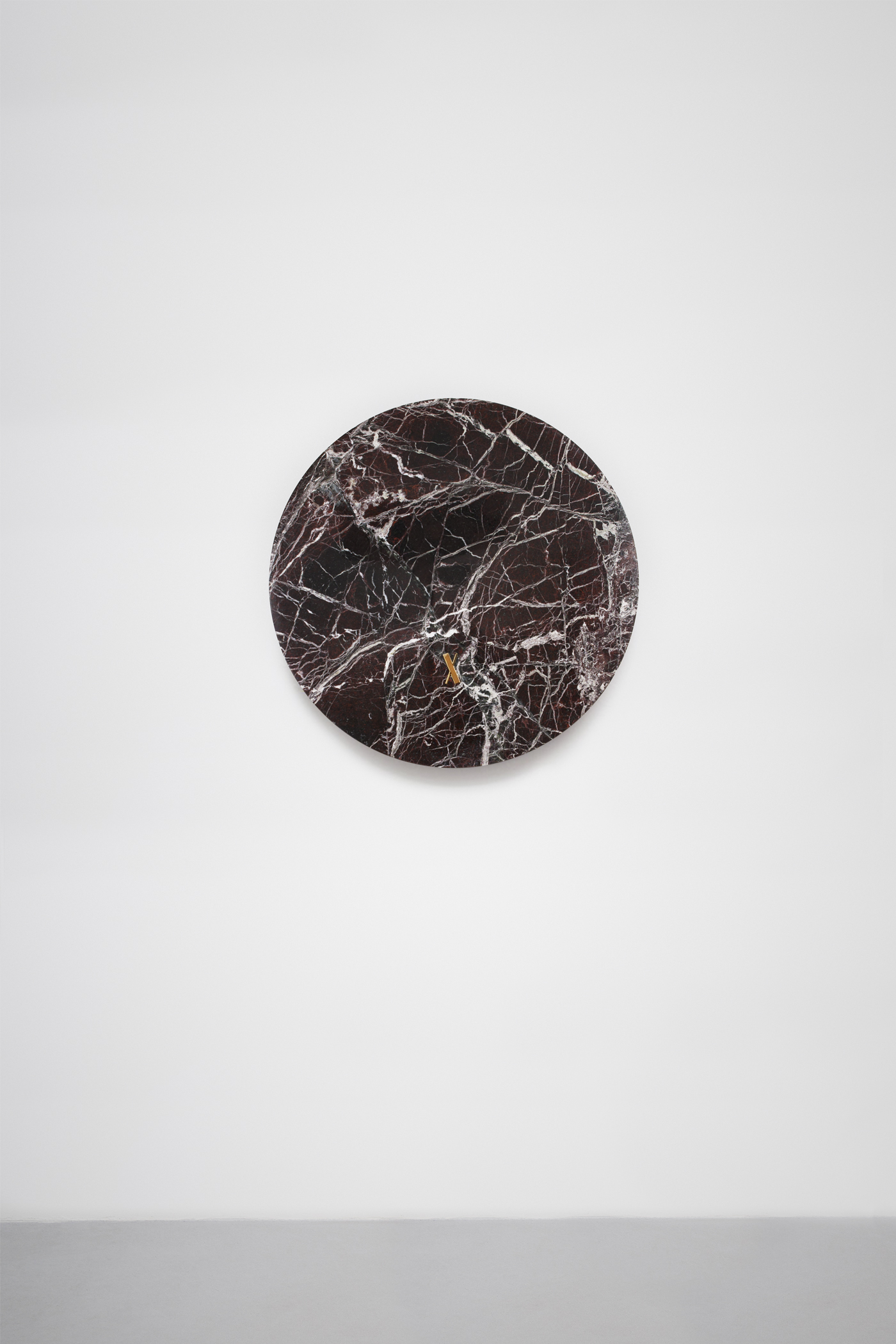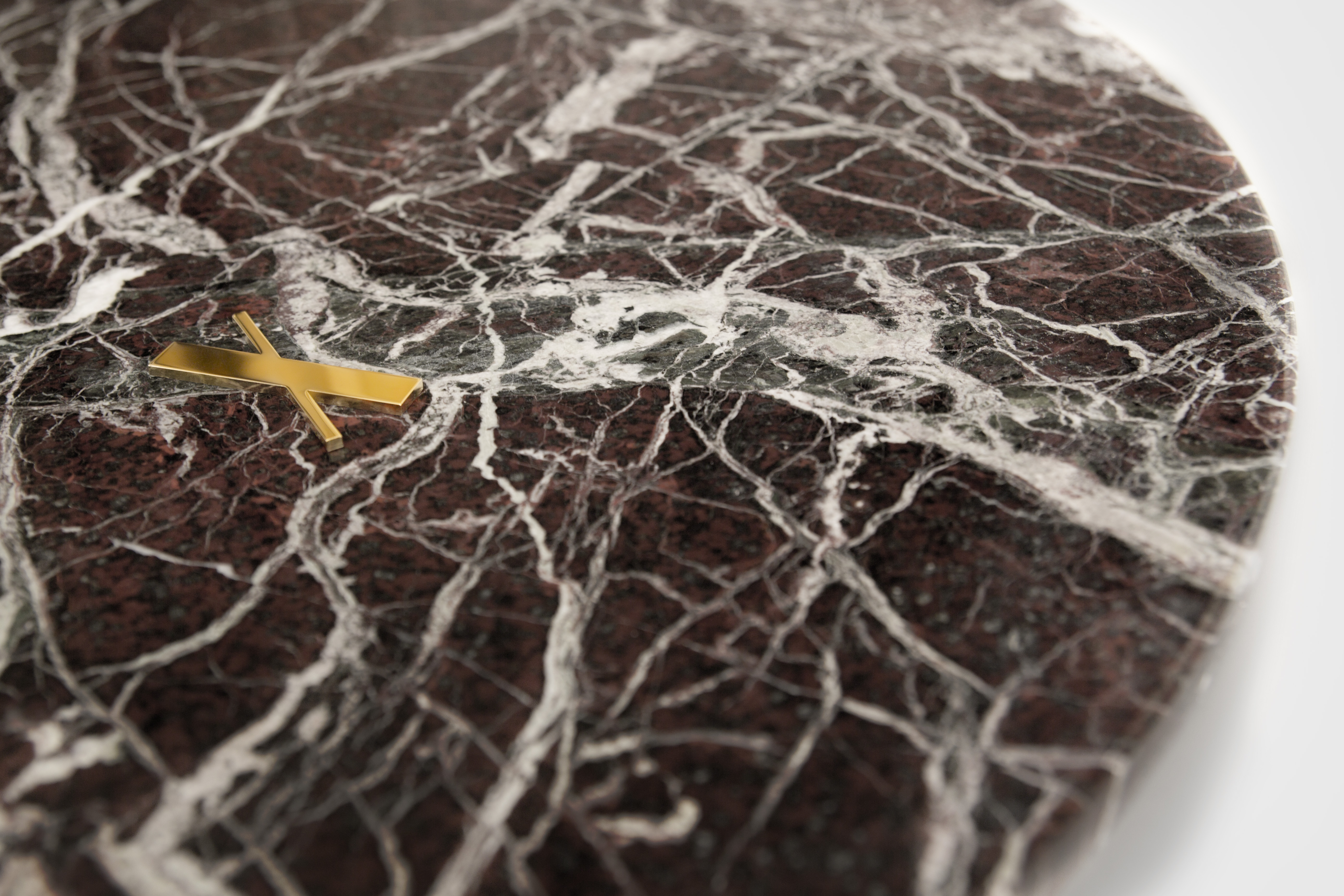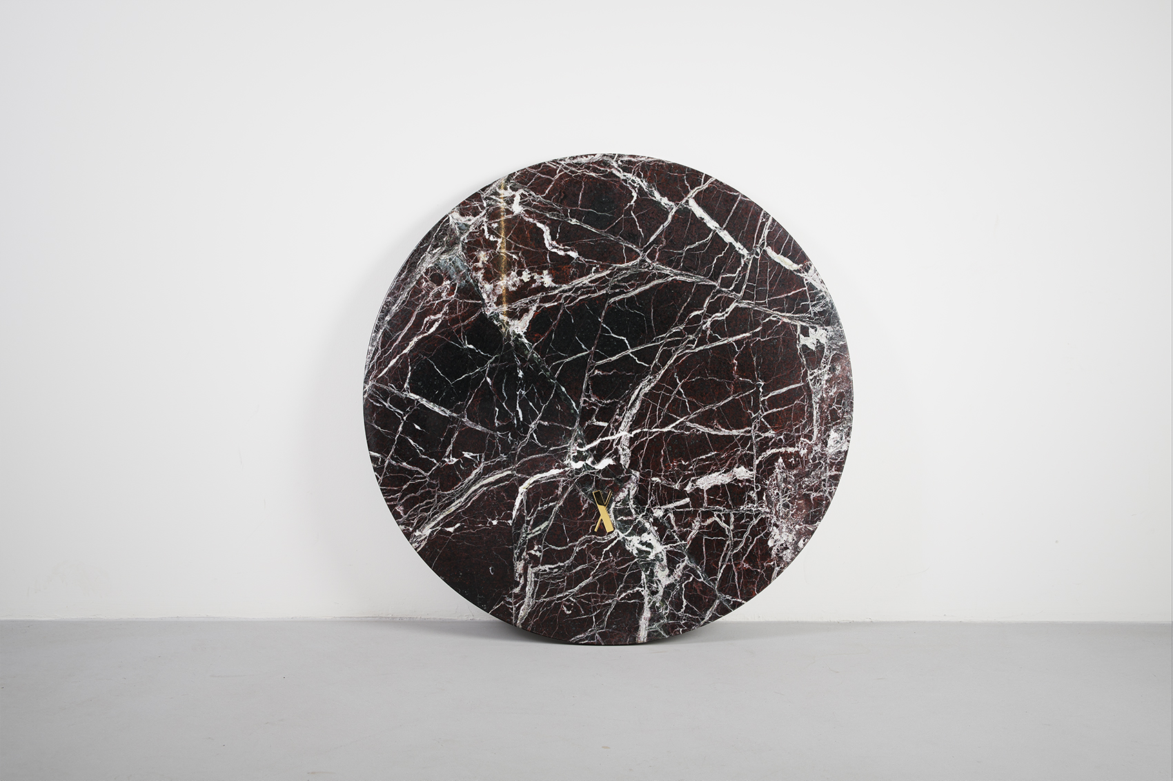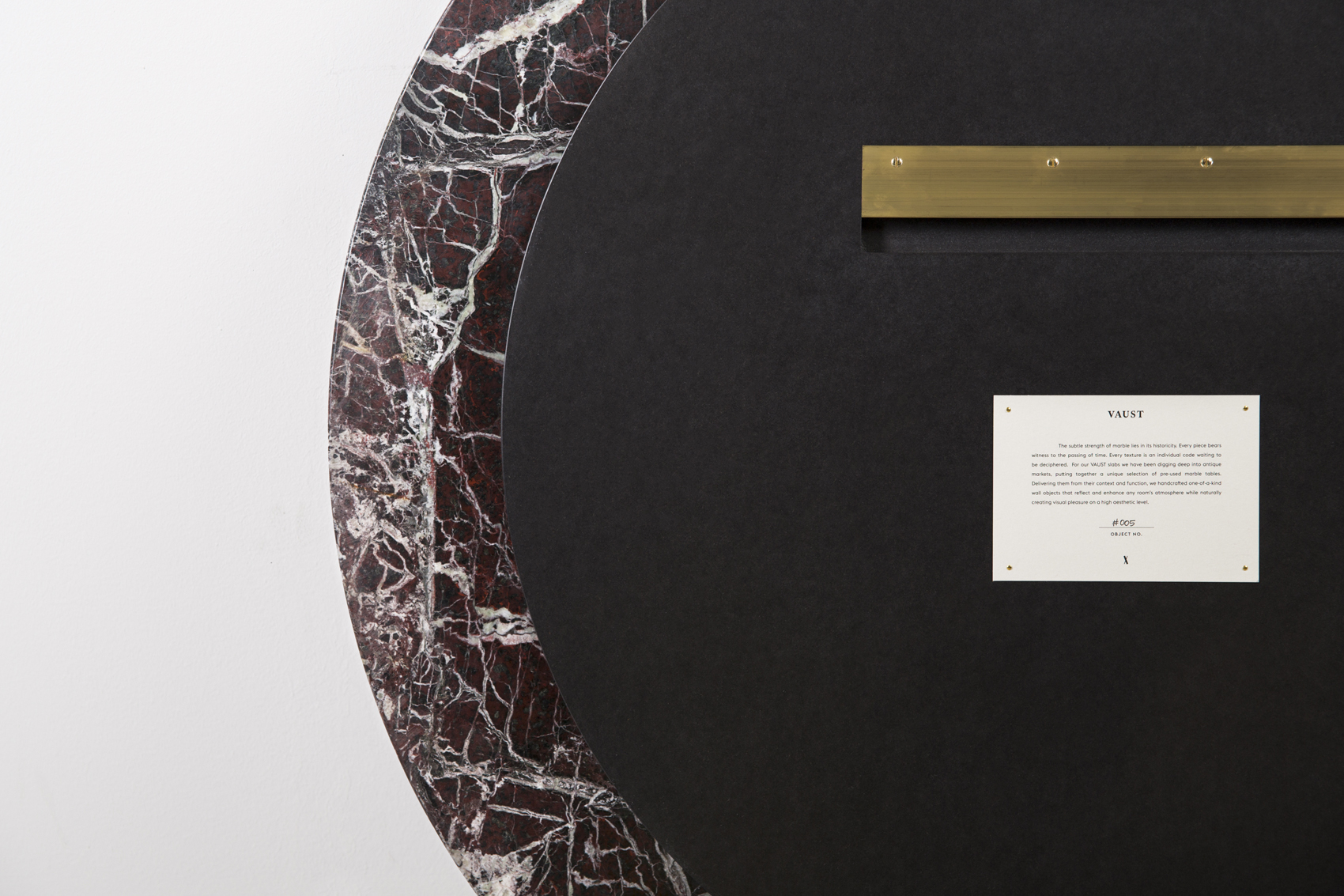Dark black, purple and reddish color ways set the basic tone for this SLAB. The whole piece is intersected by streaks of white crystals reminiscent of electricity unloading.