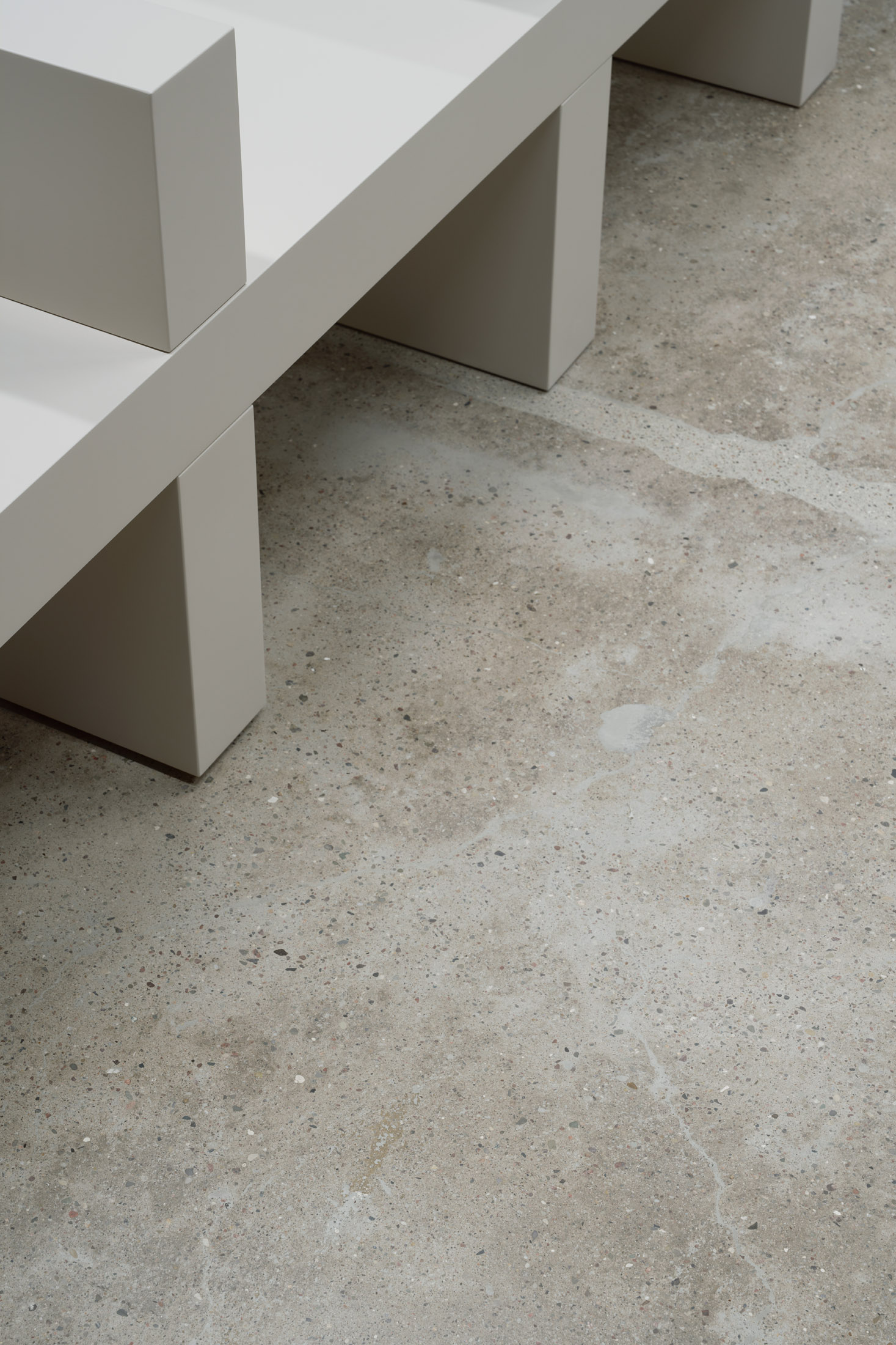 The furniture pieces in the space follow the same concept, blending classical aesthetics & contemporary materials, resulting in captivating architectural pieces. For example, the classical column moldings are applied to industrial styrofoam, creating an unexpected contrast and tension between form and material. Moreover, the design approach preserved the heritage of the existing architecture to pay homage to Berlin in the floors, walls, and raw brick columns.