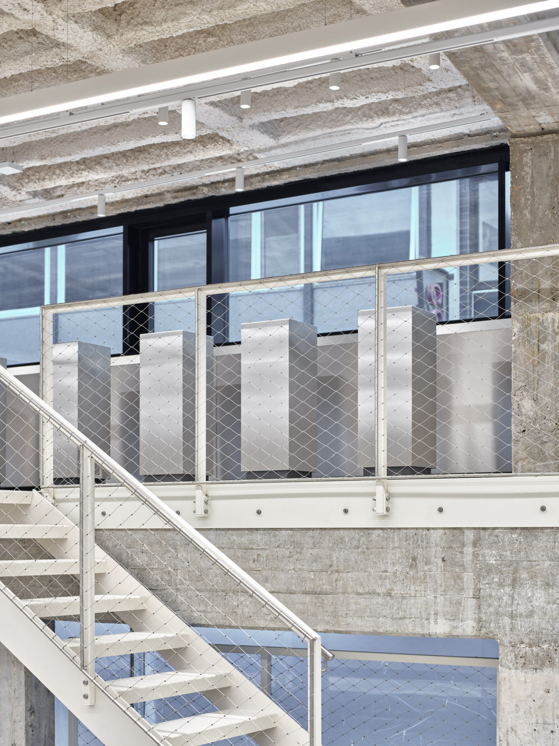 The spacious concept store for technical goods and innovative start-up products is driven by a minimal aesthetic. The overall idea is to keep some of the building site’s natural look and to bring it together with an eclectic use of materials to avoid traditional finishes of any kind.